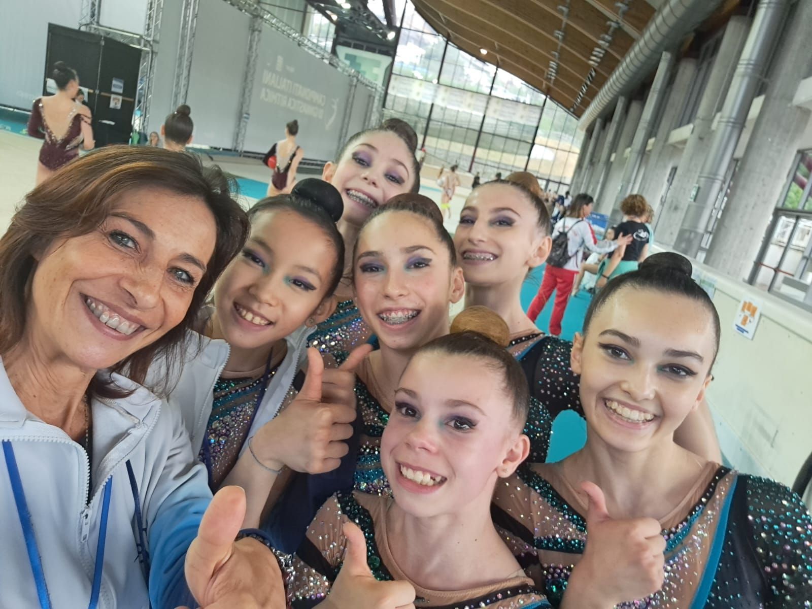 La torinese della cantera di Eurogymnica Torino, Chiara Cortese, capitana della squadra, insieme a Flavia Cassano (Iris Giovinazzo), Elisa Maria Comignani (Armonia Chieti), Virginia Galeazzi (Aurora Fano), Ginevra Pascarella (Ritmica Piemonte) ed Elisabetta Valdifiori (Cervia Ginnastica), domenica 22 giugno hanno vinto l'argento alle 10 clavette e il bronzo ai 5 cerchi rispettivamente con il punteggio di 24,200 e di 25,100.